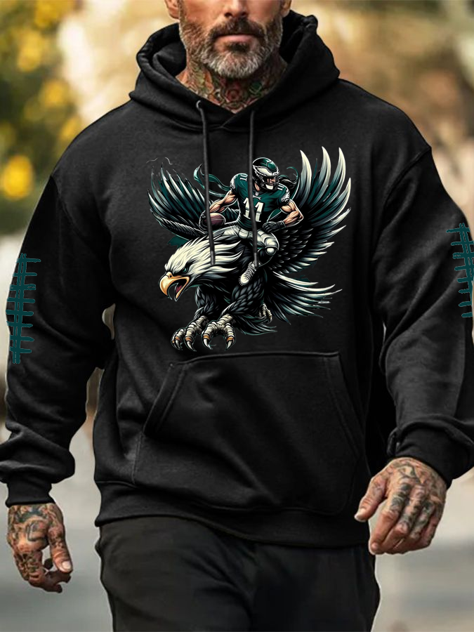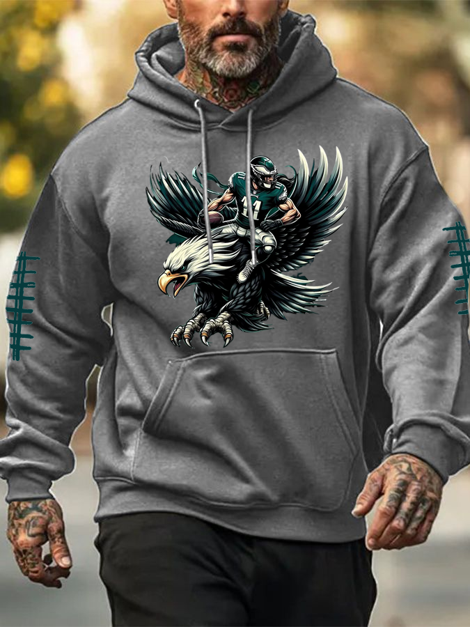 Men's Football Fans Lovers Gameday Casual Oversized Drop-Shoulder Hoodie with Pockets