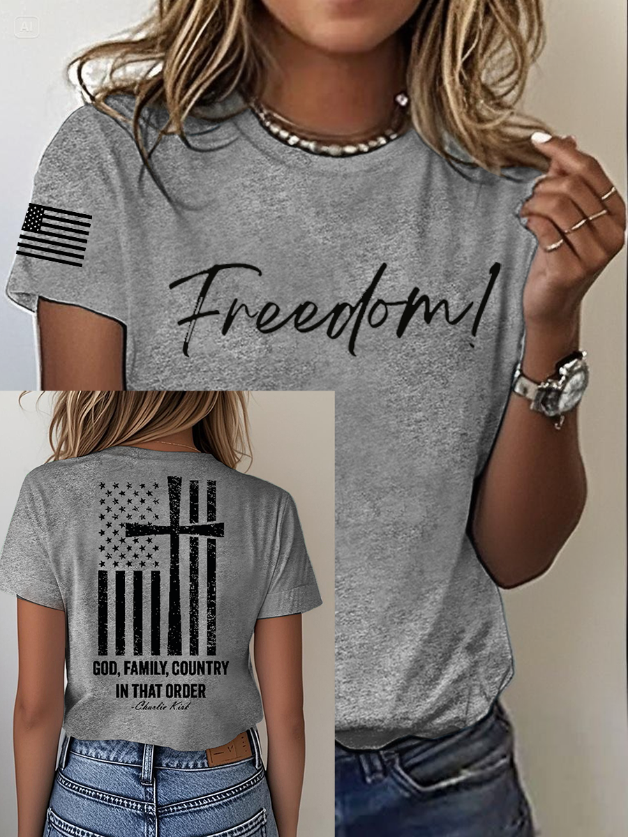 Women's Charlie Kirk Freedom Print Iron On Short Sleeve T-Shirt