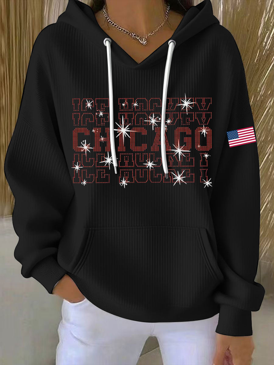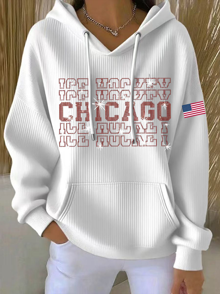 Women's Chicago Ice Hockey Rhinestone Printed Hoodie