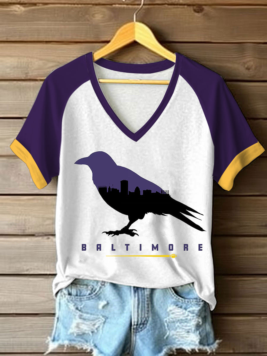 Women's Football Fans Lovers Gameday Casual  V-neck Off-shoulder Short Sleeve T-shirt