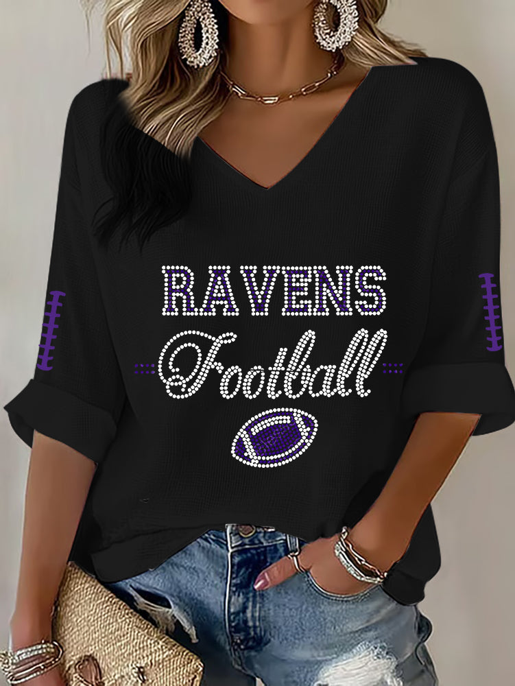 Women's Football Fans Lovers Gameday Casual Waffle T-shirt