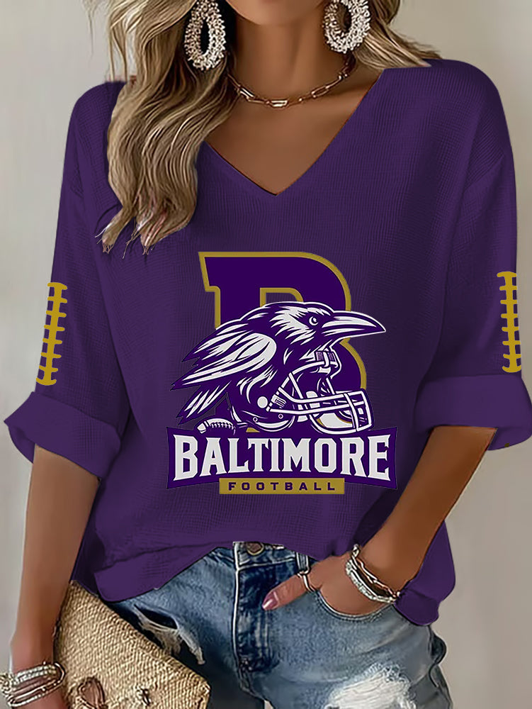 Women's Football Fans Lovers Gameday Casual Waffle T-shirt