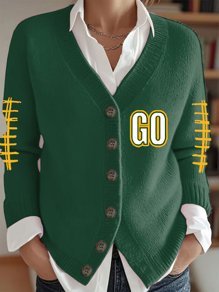 Women's Football Lover Printed Cardigan-Style Knit Jacket