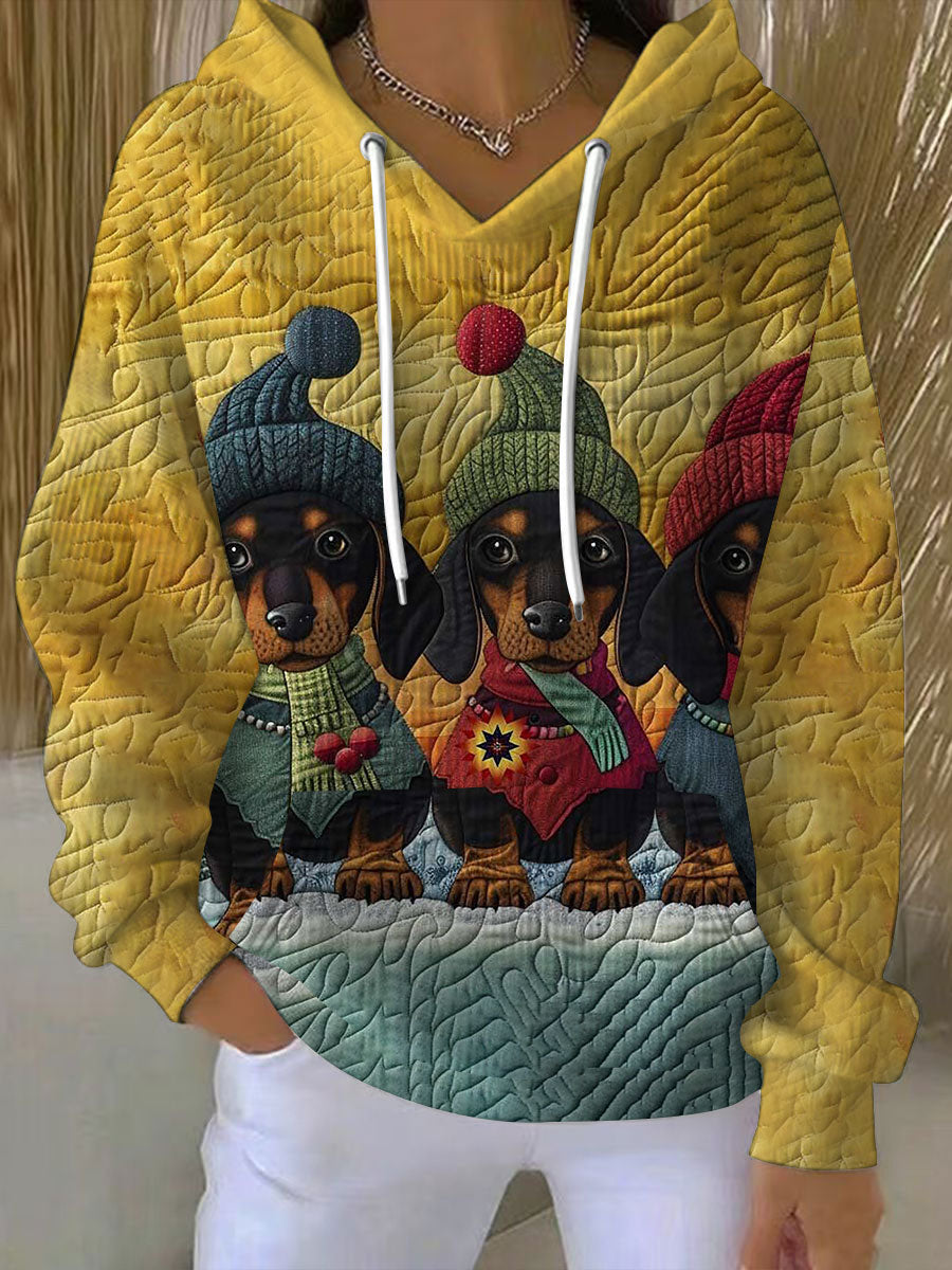 Women's Vintage Autumn Fallen Patchwork Dog Print Art Casual Hoodie